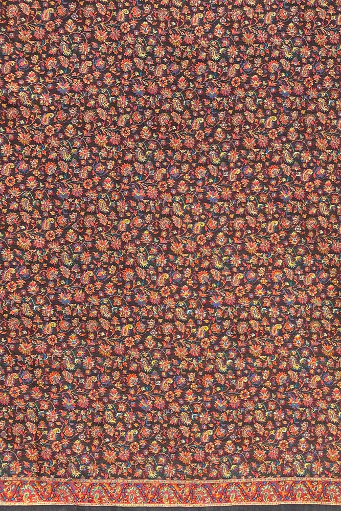 Black Pure Kani Handloom Silk Saree With Floral Woven Blouse