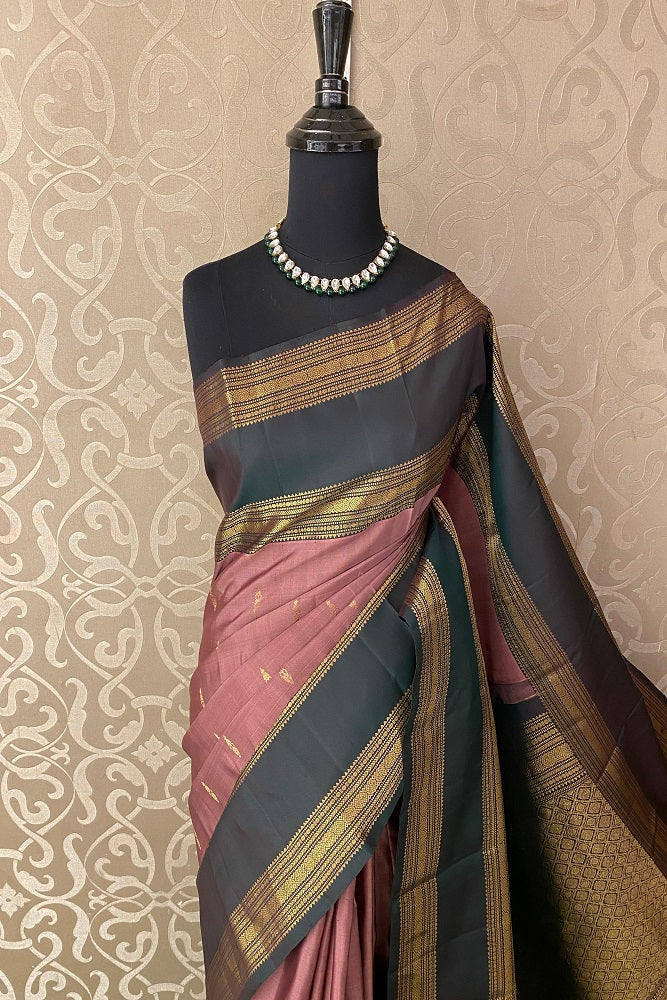 Brown Pure Kanjeevaram Silk Saree, With Unstiched Blouse