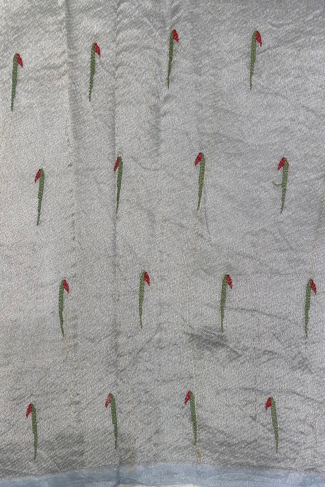 Light Blue Tissue Organza Silk Resham Embroidery Saree, With Unstiched Blouse