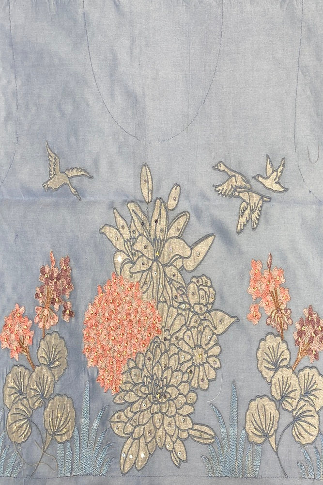Detail: Organza Silk Sarees Print With Fully Applique Work Saree.