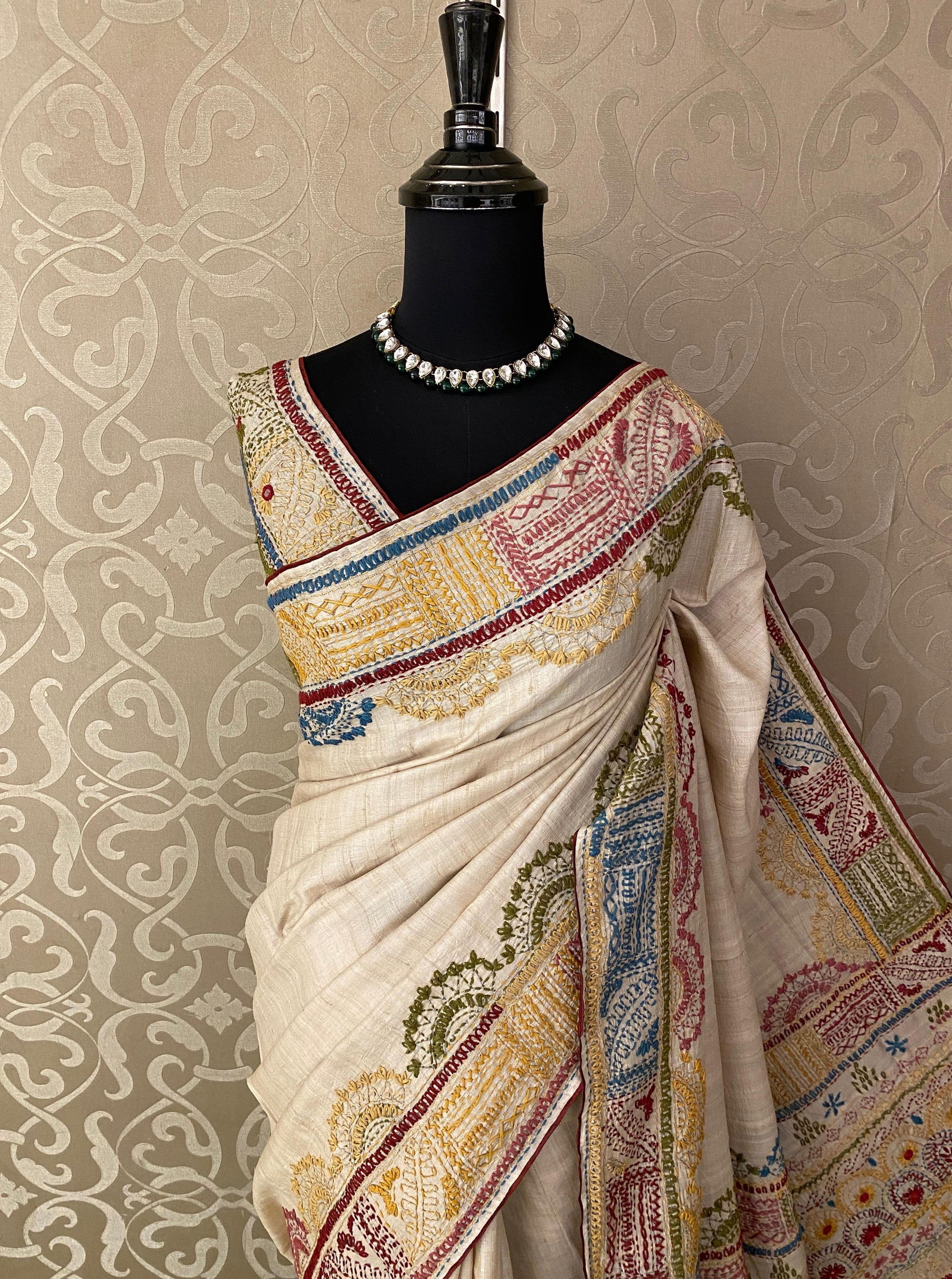 Detail: Tussar Embroidery Lambani Work Saree.