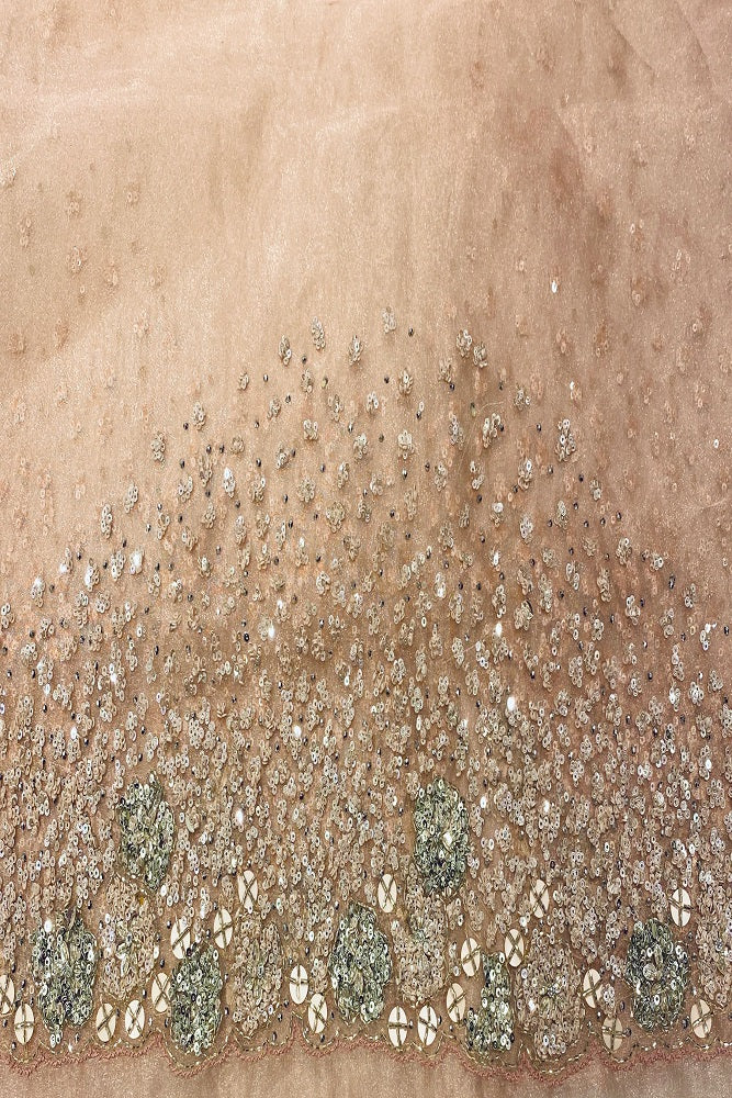 Peach Organza Silk Saree With Sequence Work, With Unstiched Blouse