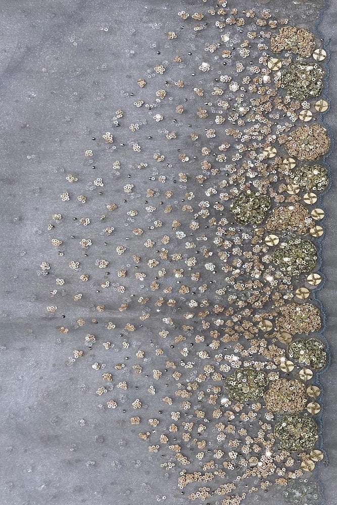 Powder Blue Organza Silk Saree With Sequence Work, With Unstiched Blouse